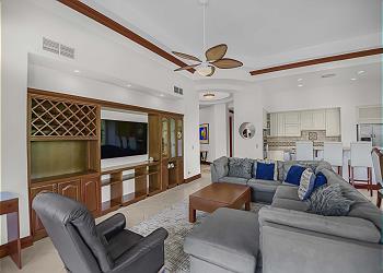 Bella Vista's Spanish-Mediterranean architecture was designed with luxury in mind. Interiors are spacious and airy with high ceilings, fresh colors and fine finish detail. A vestibule entry opens into a designer kitchen, a large living room, and a dining area divided by a cooking island with bar seating for entertaining.