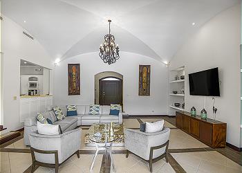 The elegant, taste-of-Africa interior design of Casa Big Game serves to compliment the vast, beautifully equipped, open-concept chef’s kitchen, dining room, and living area with its pass-through bar. Adjacent to the rooftop terrace, the game room features a full-size billiards table, bar, extra bed and half bath. Open the double wide, glass doors to create the perfect indoor-outdoor party area for friends and family.