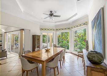 Featuring six bedrooms and five bathrooms and one half baths, the two-story floor plan boasts a cathedral-ceiling foyer and a spacious roof-top terrace. Walk through the expansive living area and step out onto a beautifully furnished patio, which overlooks a free-form pool surrounded by lush, tropical gardens with a backdrop of the Costa Rica rainforest.